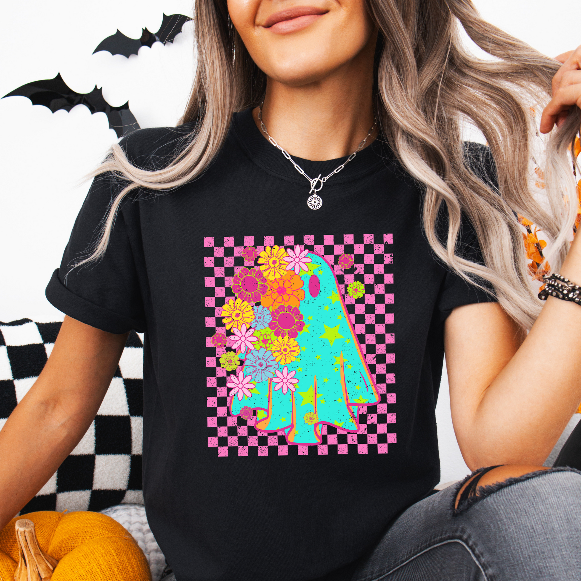 Colorful Floral Checkered Ghost