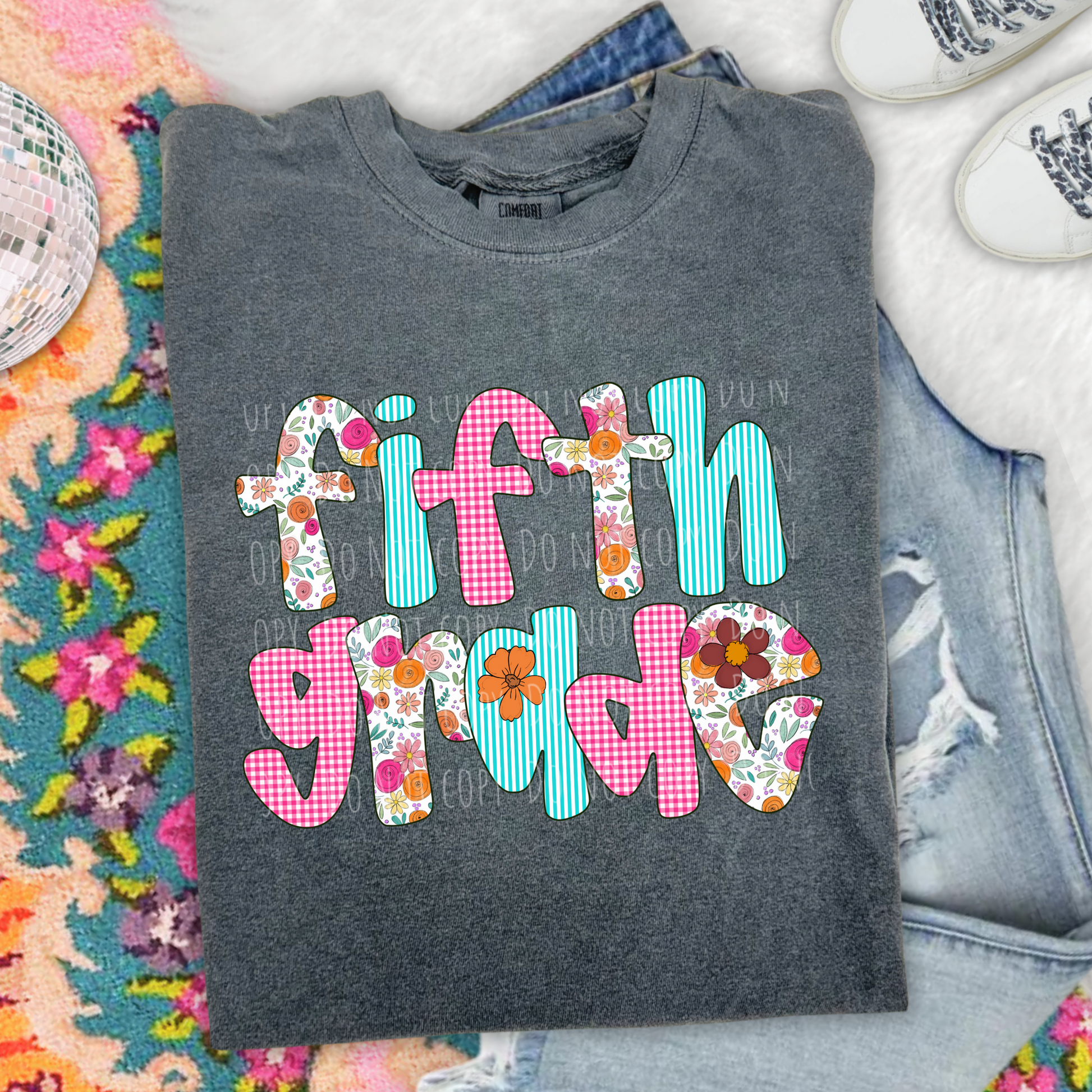 Fifth Grade Floral Gingham