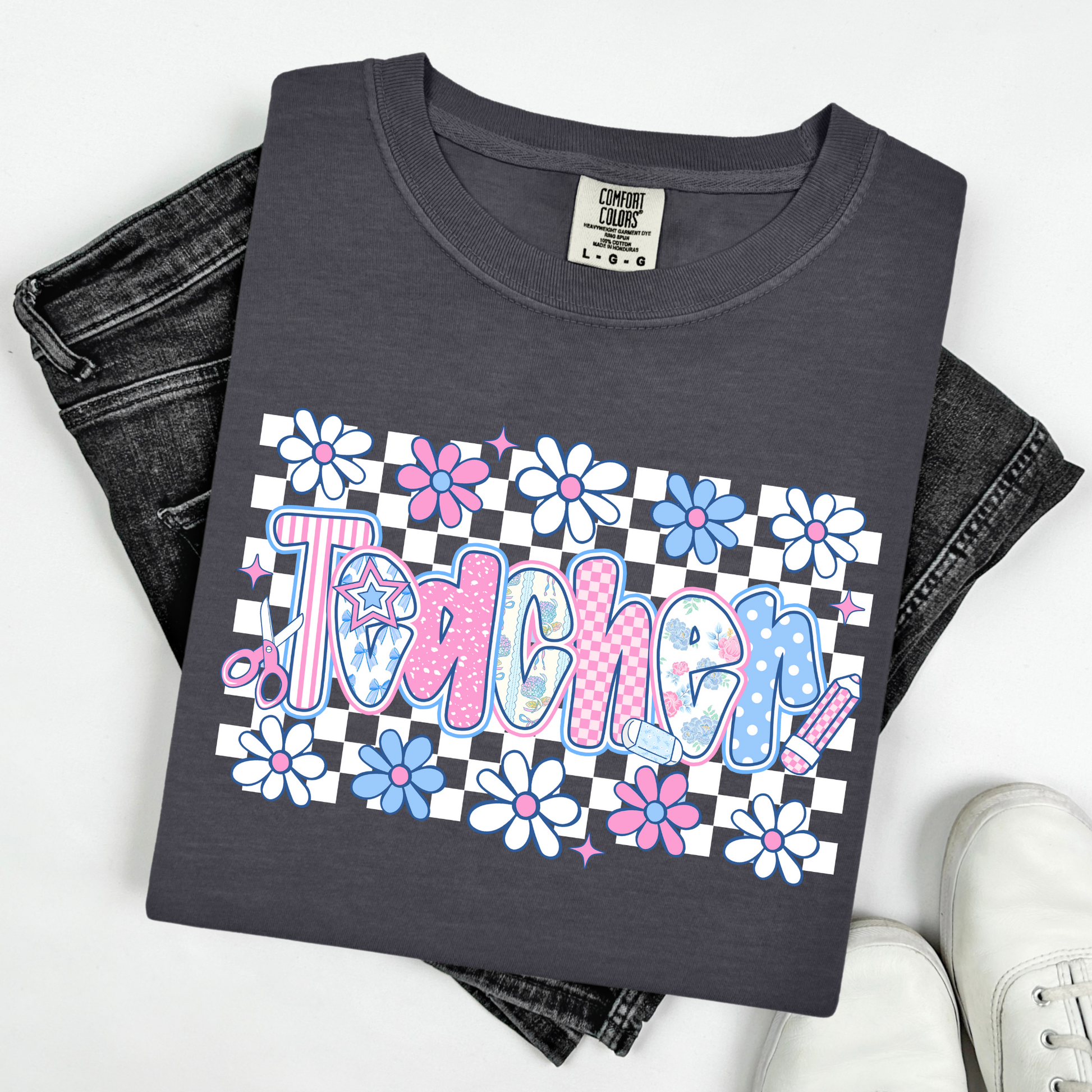 Teacher Checkered Flowers